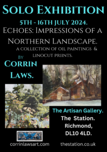 I am Corrin Laws, a painter and print maker based in the North East of England. Echoes: Impressions of a Northern Landscape is my first Solo exhibition, to be held at The Station in Richmond, North Yorkshire.