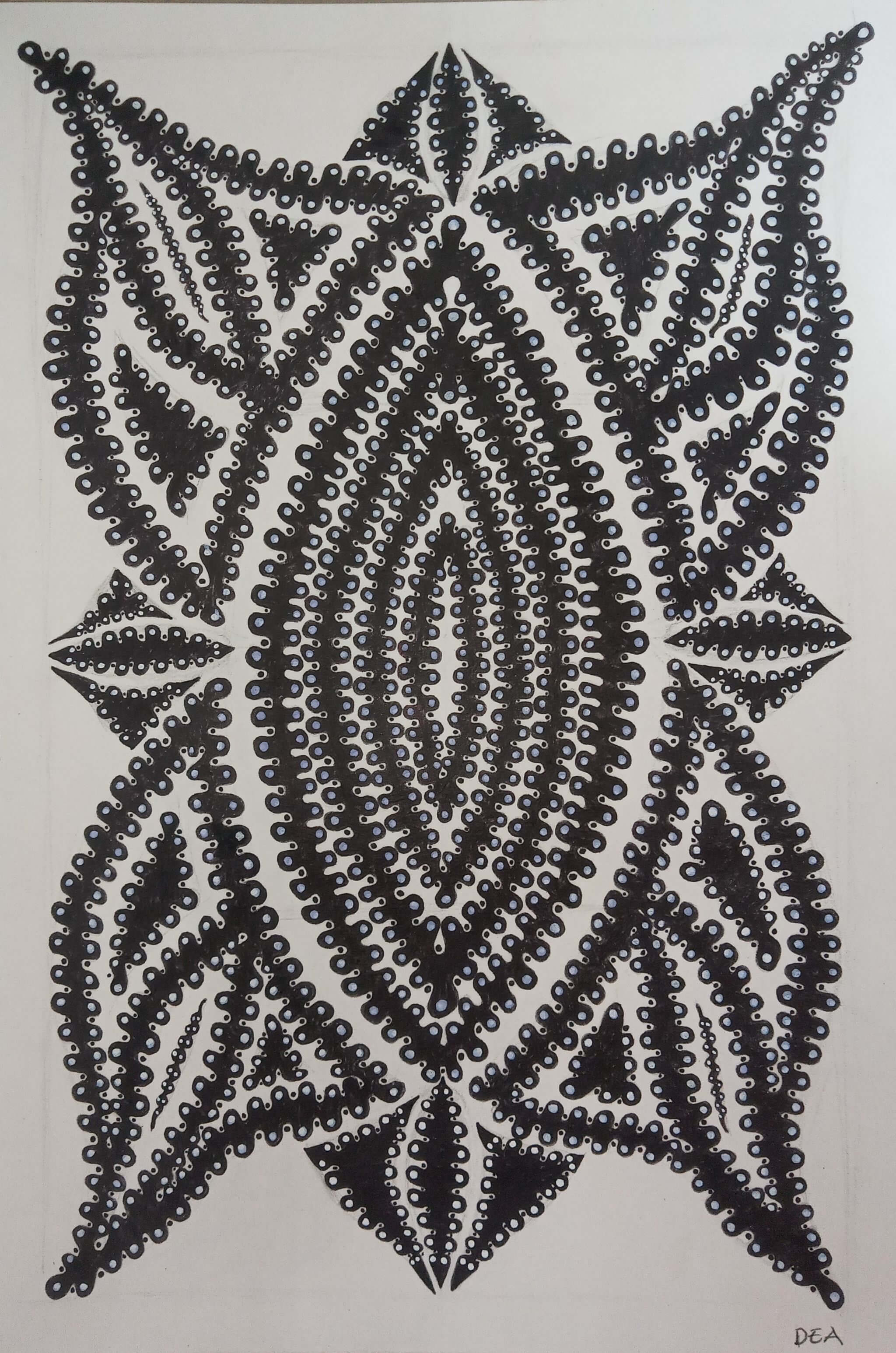 My work draws inspiration from natural forms and is abstract in nature. I love spirals and repetitive patterns and shapes. Seeds and chrysalides often pop up as well, as I am interested in the idea of metamorphosis and transformation.