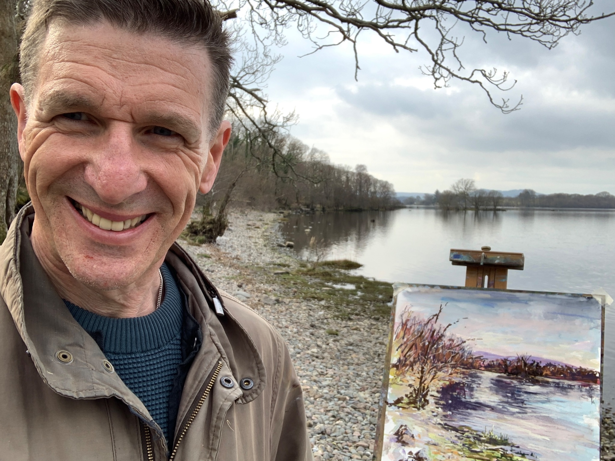 Milarrochy Bay is a quiet location on the bonnie banks of Loch Lomond providing a host of artistic opportunities. Painted on site in early Spring on a cold but bright morning using watercolour washes and ArtGraf to create an expressive underpainting on which soft pastel was then applied.