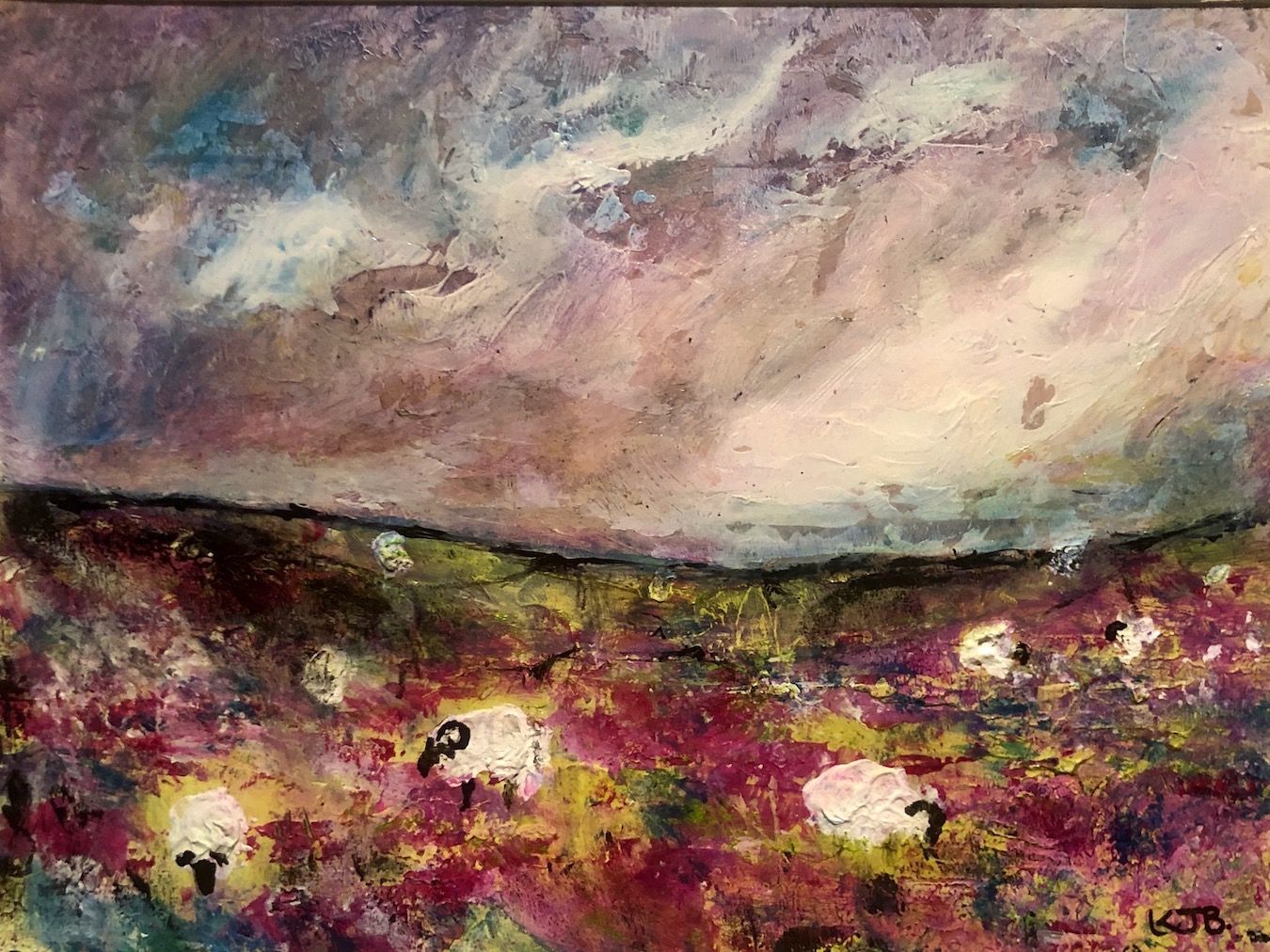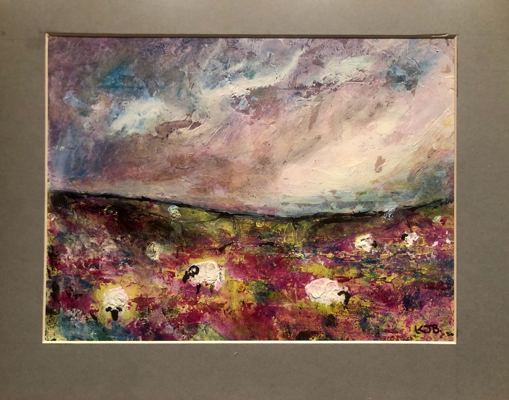 Abstract landscape on mountboard presented with a mount though does not need to be framed behind glass