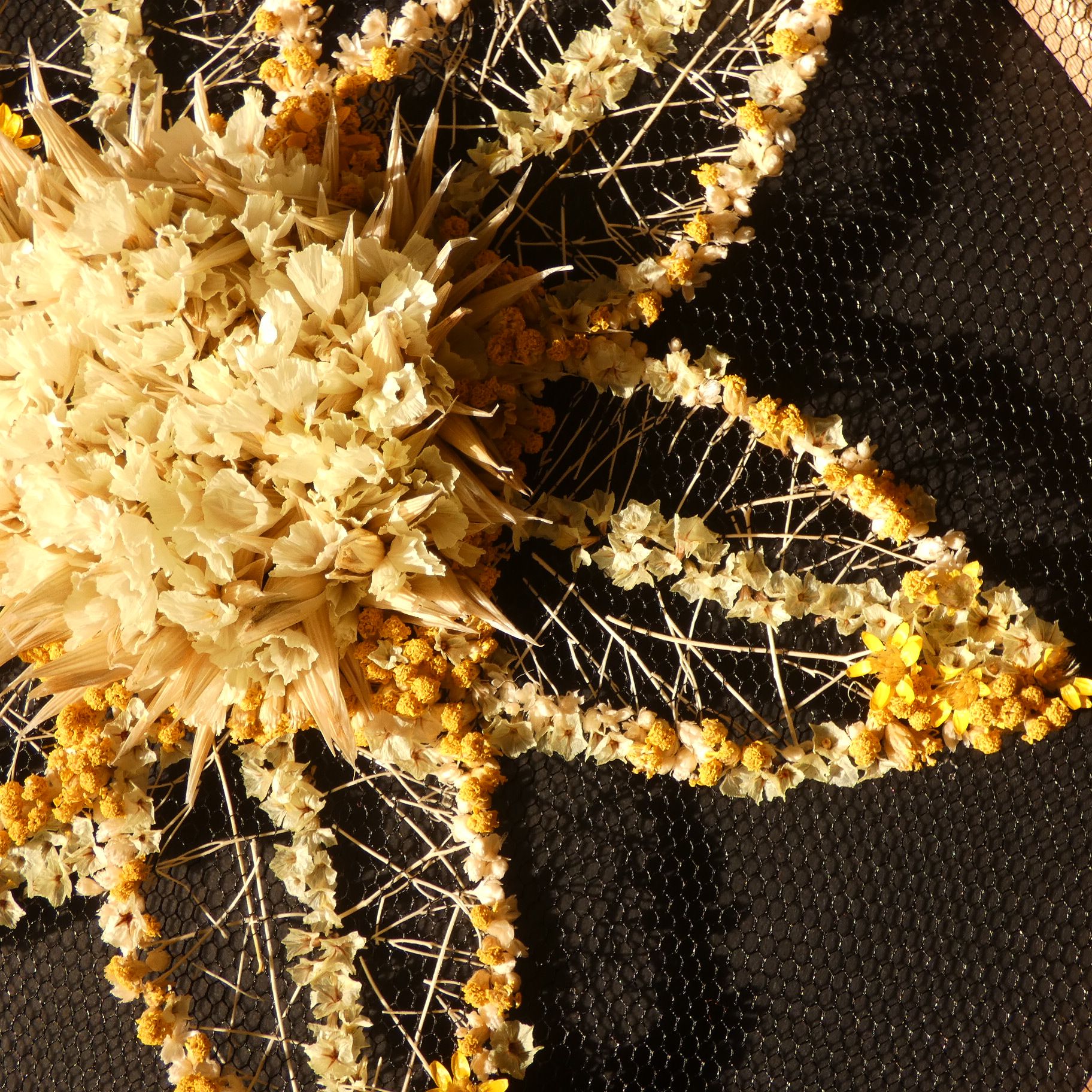 Using a palette of yellows and whites this artwork pays homage to the many and varied types of daffodil. The ‘trumpet’ is built up to give height whilst woven stems become the veins of the petals.