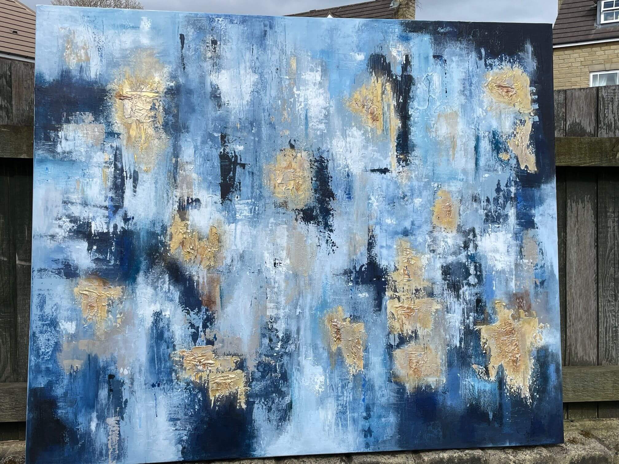 Abstract landscape heavily textured with metallic enhancement. Inspired by Monet’s ‘Water Lillie’s’ and a real impactful contemporary piece.