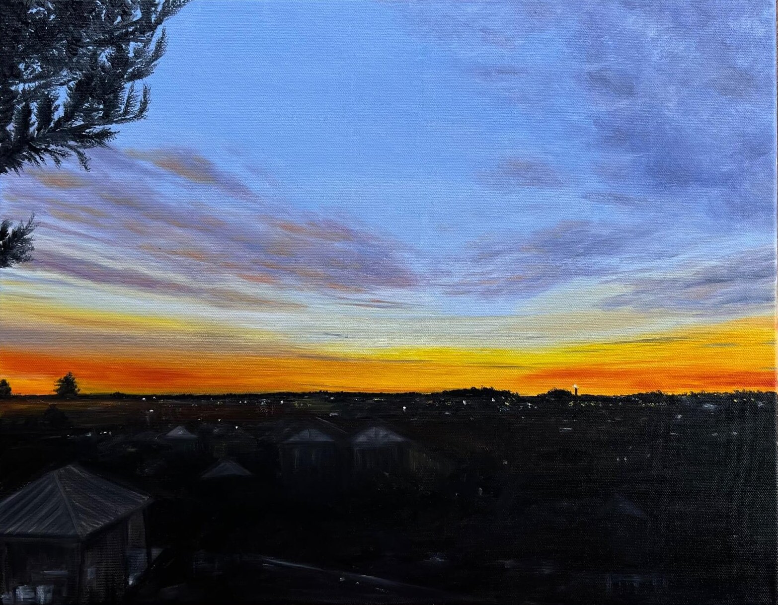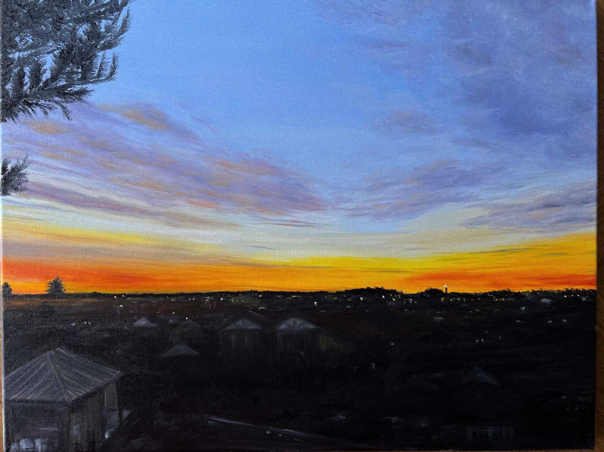 This artwork aims to capture the beautiful colours of a winter morning sunrise.